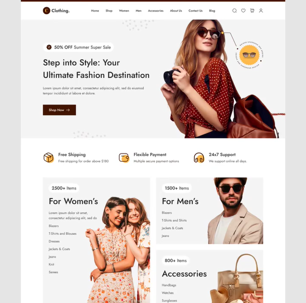 The design approach centered on simplicity, elegance, and functionality. The homepage was revamped to feature new arrivals and best-sellers, helping customers quickly find popular products. Each page—Shop, Product, Cart, Checkout, and Product Category—was designed to be visually consistent and easy to use. The color palette and typography were chosen to reflect the brand’s identity, ensuring a cohesive and professional look.